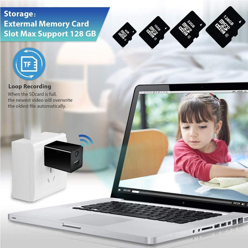• 4, Motion Detection Alert & Push Notification to Your Cellphone -- If there is any movement happen in the capture range of this charger hidden camera, it will immediately send you a motion detection alert to your cellphone and automatically record the video at that moment and save in the micro SD card (not included). So you will be fully informed and get the evidence if anything bad happen in your house.